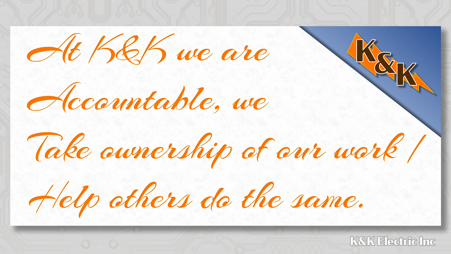 The following is K&K Electric’s list of Core Values and Behaviors that we as employees all strive to embrace and follow.